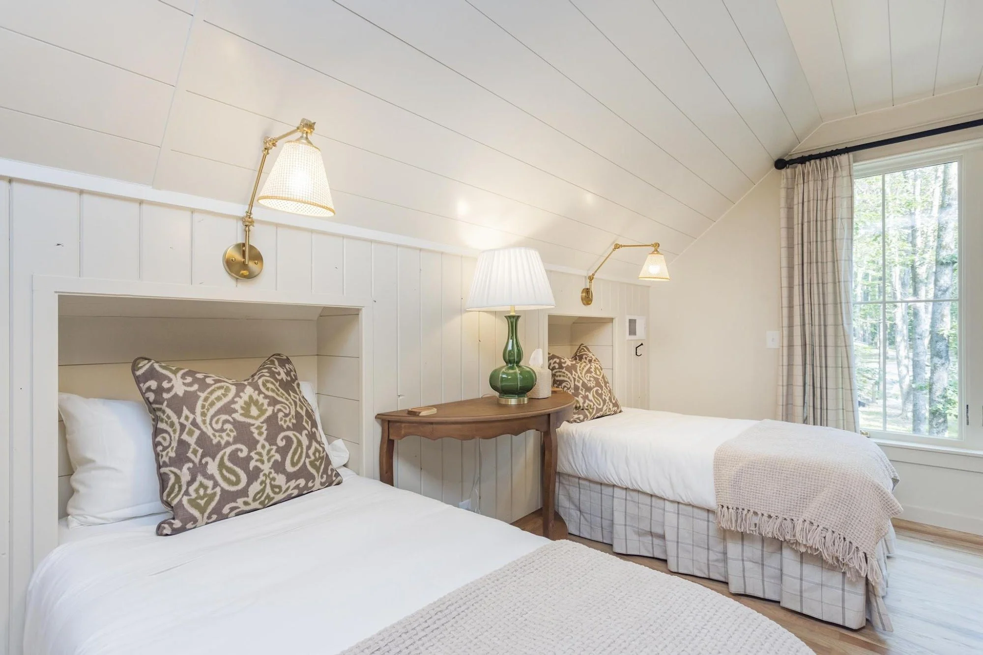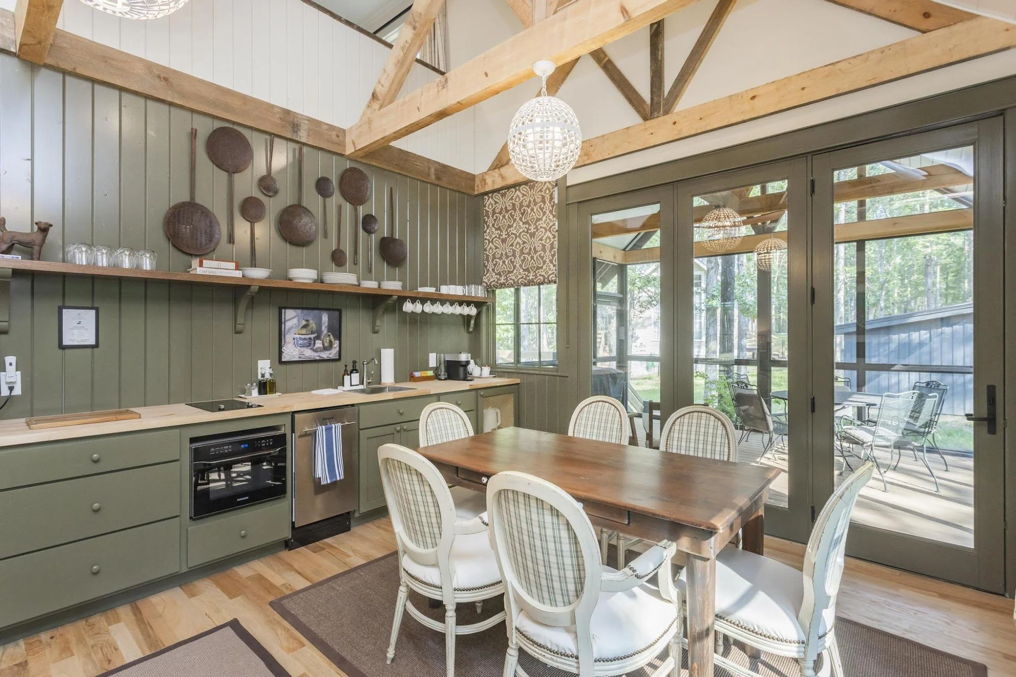 Reminiscent of the dog trot homes of yesteryear, the Sapsucker Cottage is located in the center of our little village and is complete with ample space to stretch out your trail-tired legs. One king bedroom can be found on the main floor, while an open sleeping loft overlooking the main living space is equipped with a set of built-in twin beds. The Sapsucker also boasts one of the largest screened-in porches, and with an impressive stretch of south-facing views, Fido is welcome to keep watch for our resident beaver family as well.